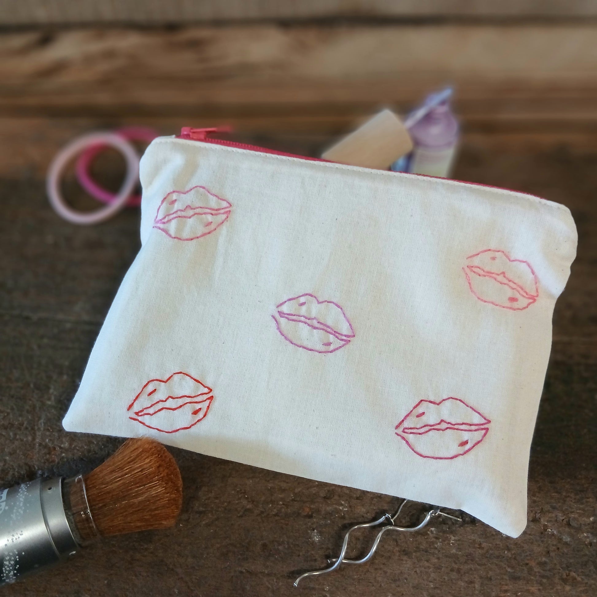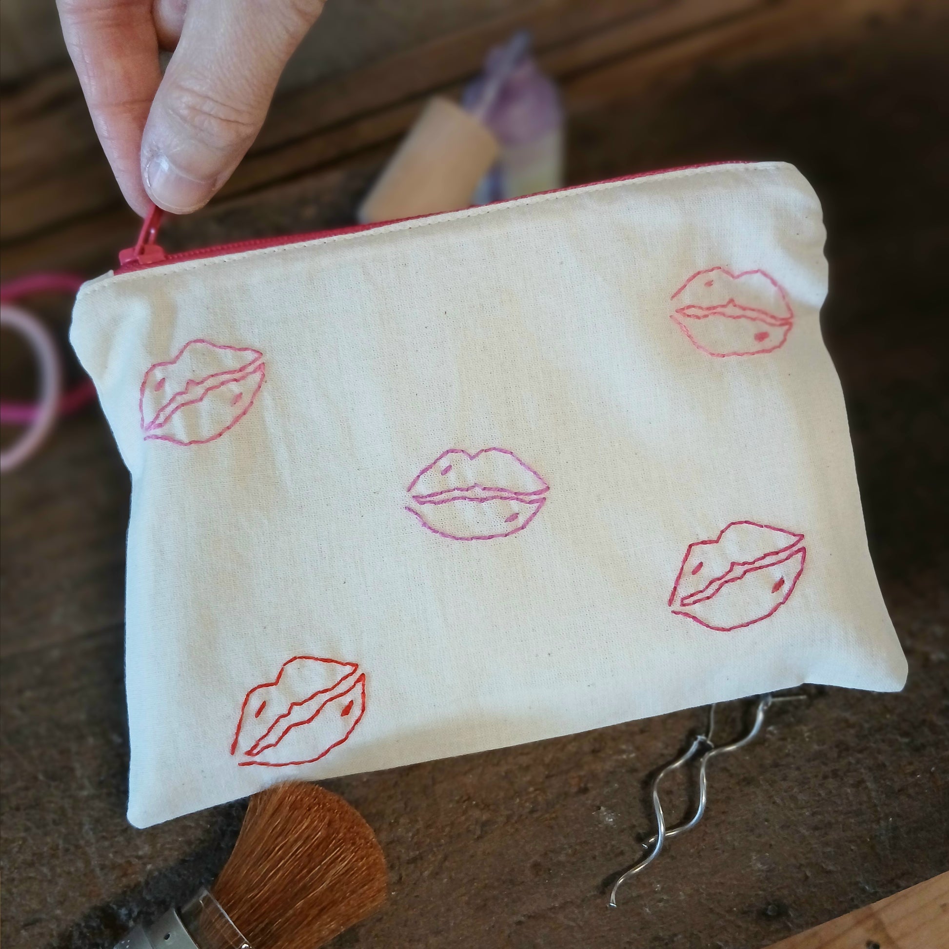 En coton bio GOTS, un design girly brodé à la main, à glisser dans un sac ou déposée dans la maison, cette petite pochette permettra de ranger les petites affaires du quotidien.