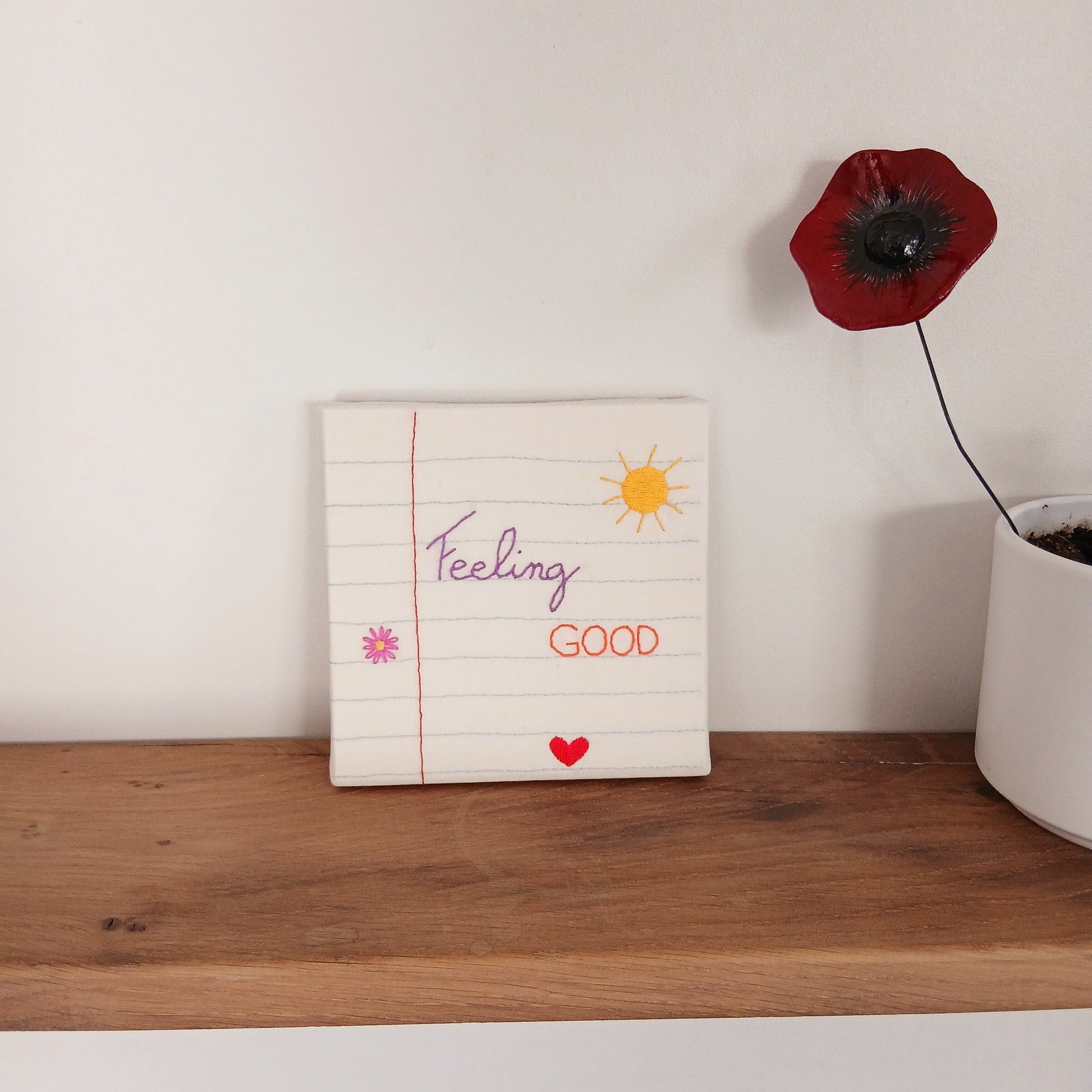 Quelques mots brodés pour amener une note de positivité et de bonne humeur colorée !
