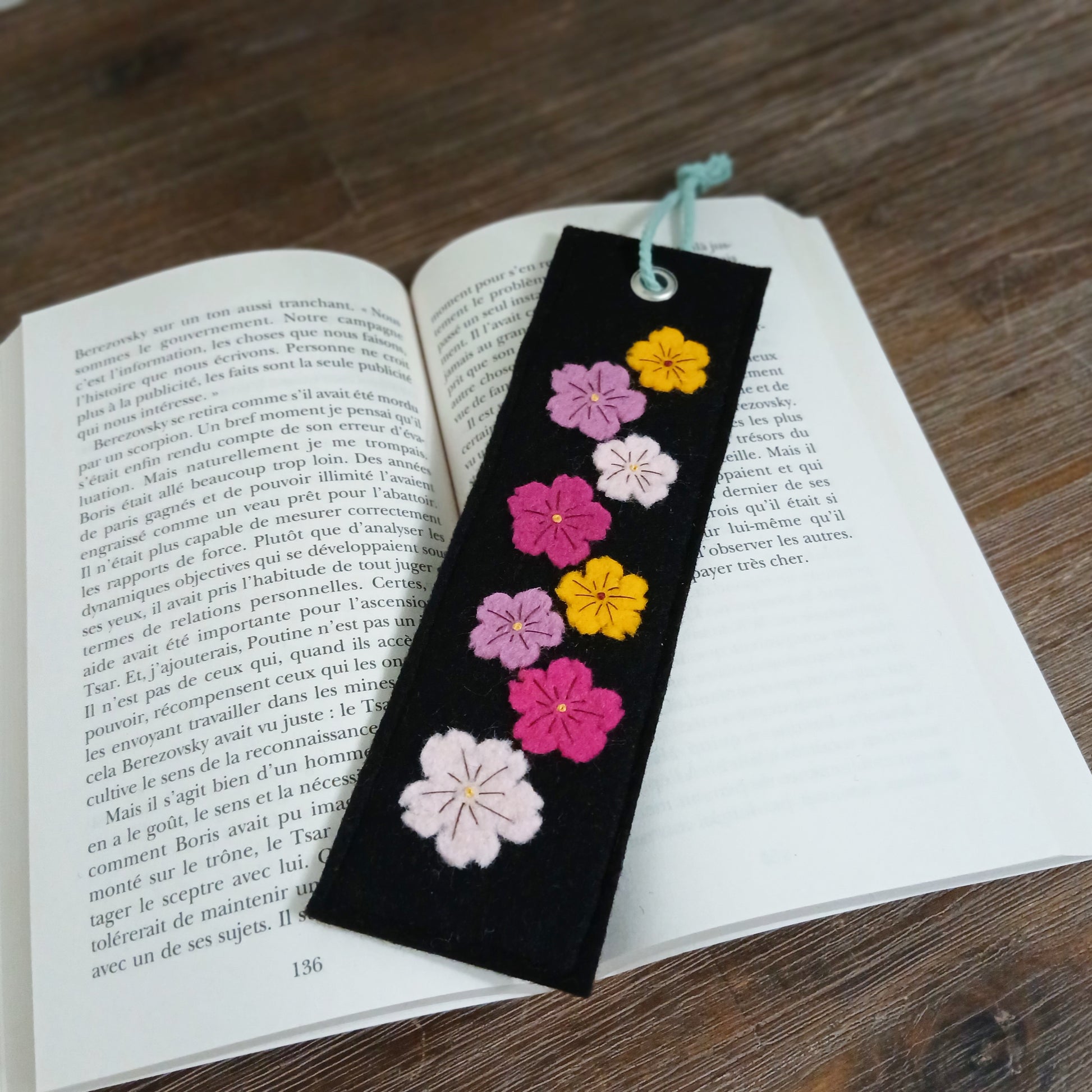 → marque-page en feutrine de laine doublée
