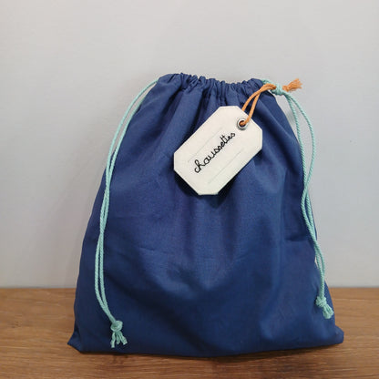 Ce sac en coton bio doublé est la parfaite solution pour emballer, ranger ou transporter toutes vos petites affaires. Que ce soit pour offrir ou pour soi, ce pochon en tissu pourra avoir mille et une utilisations et propriétaires. Il peut s'agrémenter d'une petite étiquette pour le personnaliser.