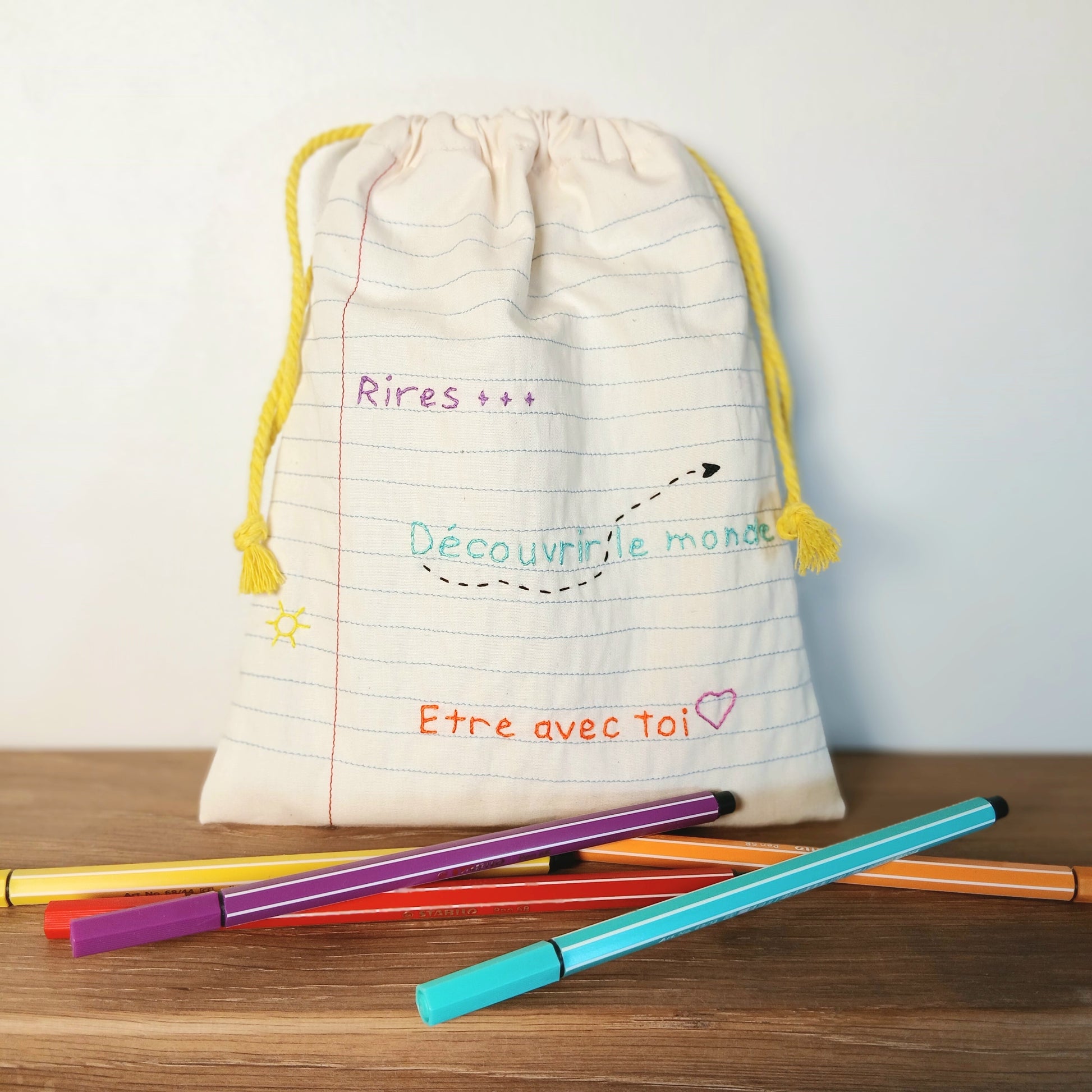 Ce sac en coton bio, brodé à la main, est la parfaite solution pour emballer, ranger ou transporter toutes vos petites affaires. Que ce soit pour offrir ou pour soi, ce pochon en tissu pourra avoir mille et une utilisations et propriétaires.