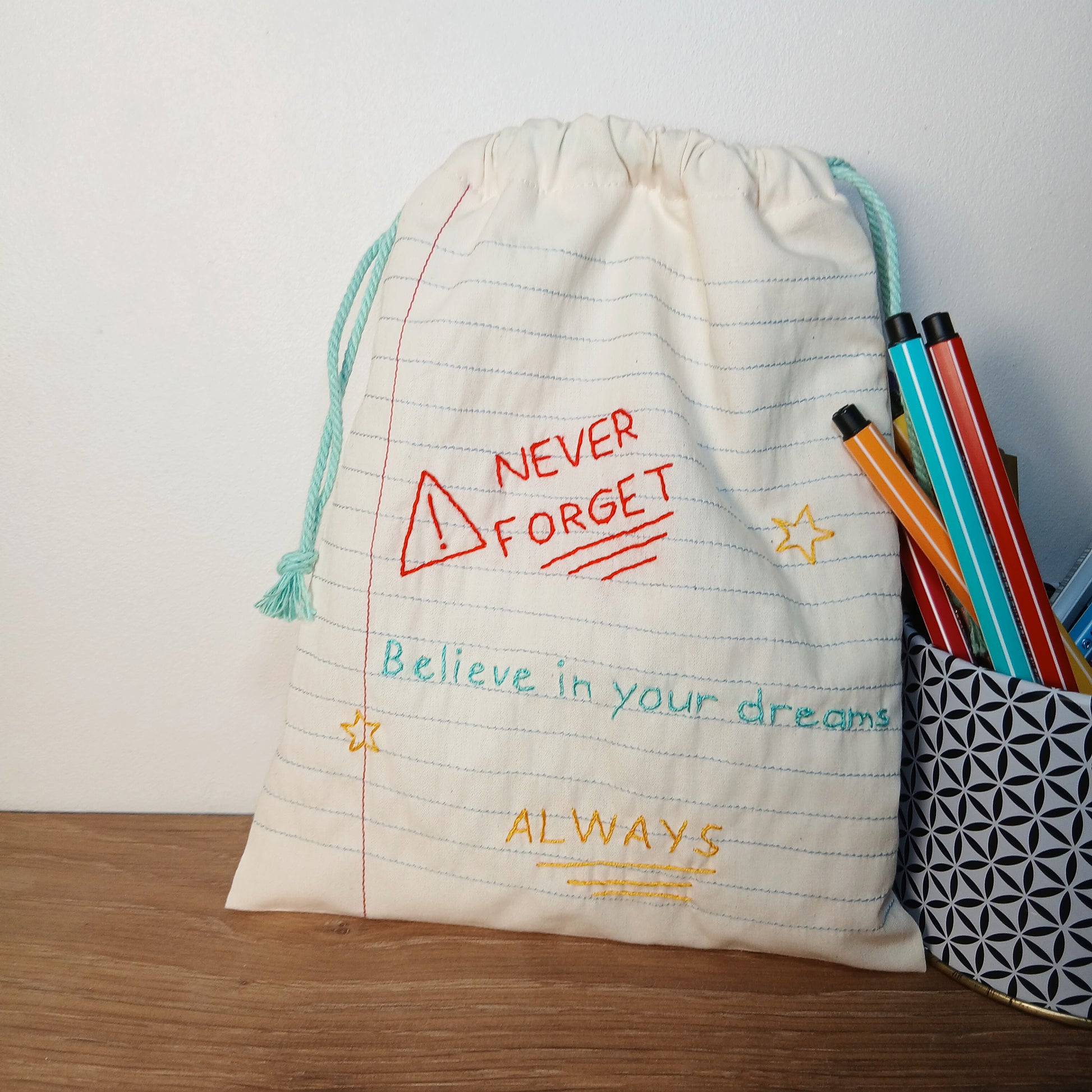 Ce sac en coton bio, brodé à la main, est la parfaite solution pour emballer, ranger ou transporter toutes vos petites affaires. Que ce soit pour offrir ou pour soi, ce pochon en tissu pourra avoir mille et une utilisations et propriétaires.
