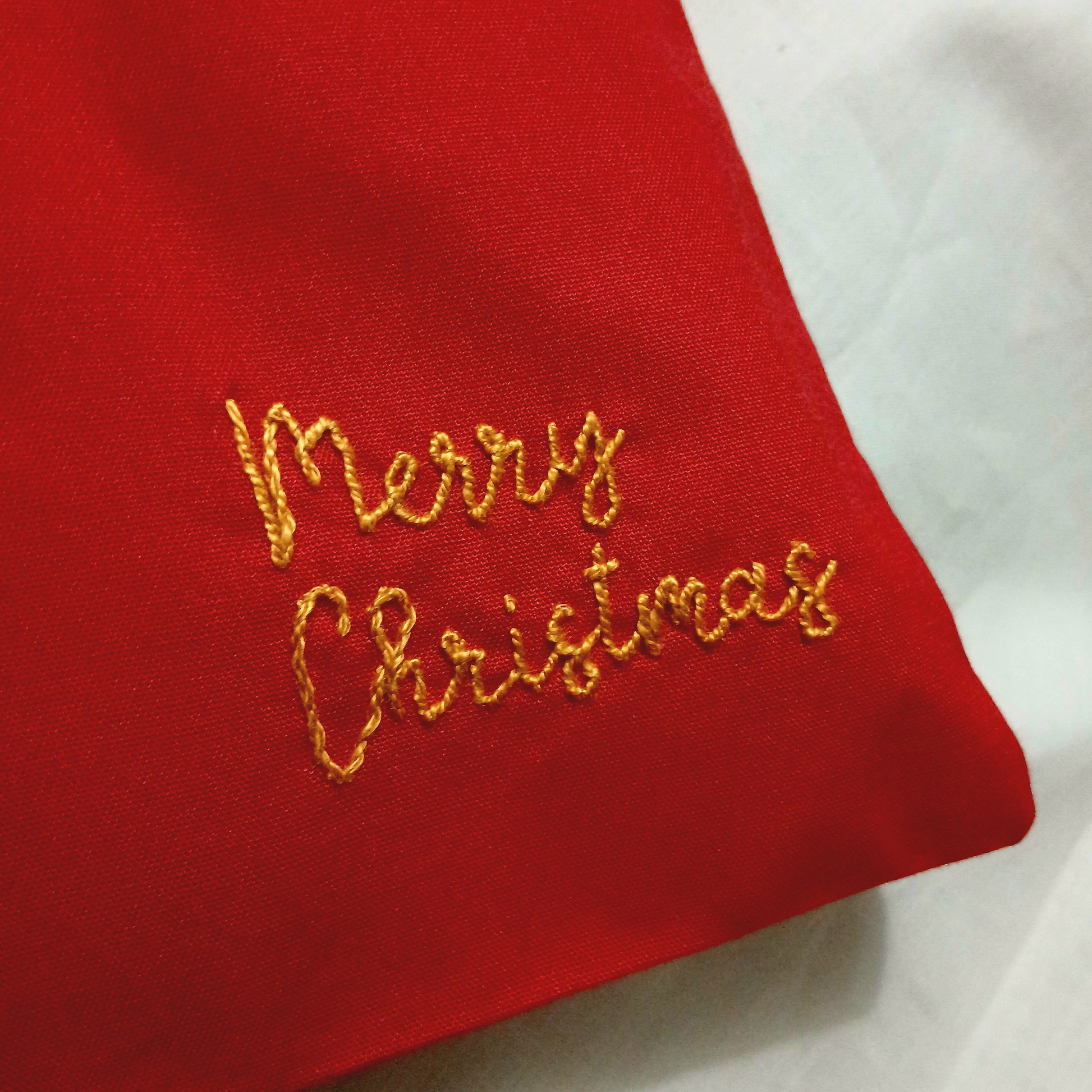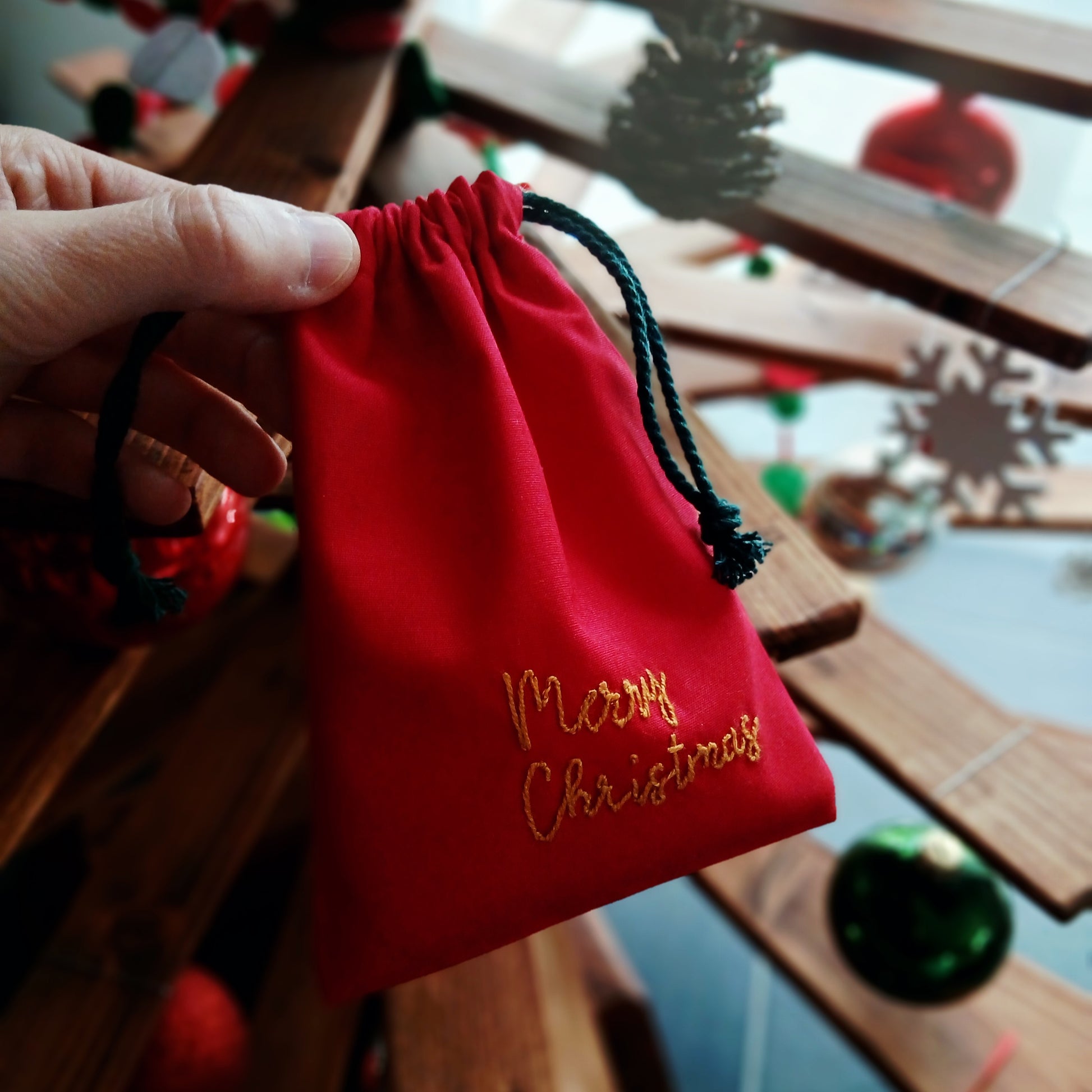 Amenez de la magie en emballant un petit cadeau avec ce pochon en tissu, brodé aux couleurs de Noël.